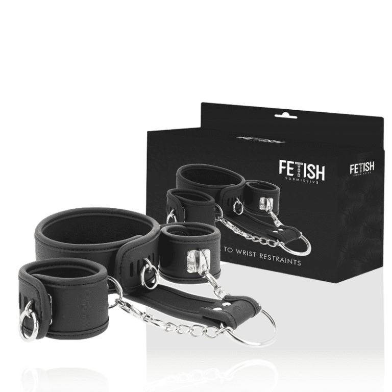 FETISH SUBMISSIVE – COLLAR AND WRIST CUFFS VEGAN LEATHER WITH NEOPRENE LINING