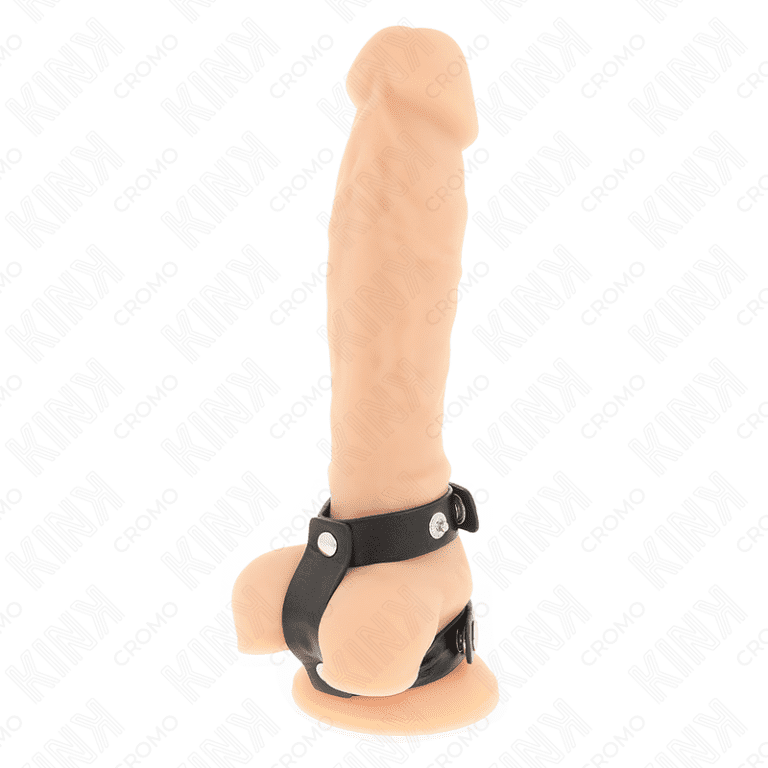 KINK – ADJUSTABLE LEATHER PENIS RING AND BALL DIVIDER STRAP