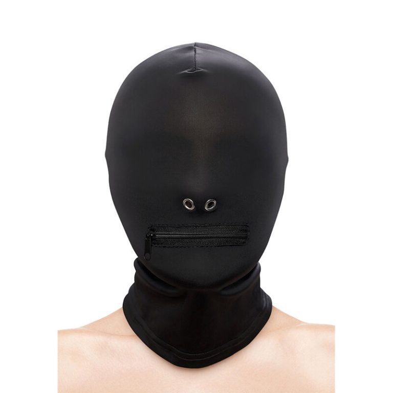 NS NOVELTIES – FETISH & FASHION CLOSED ZIPPERED MOUTH HOOD NYLON BLACK